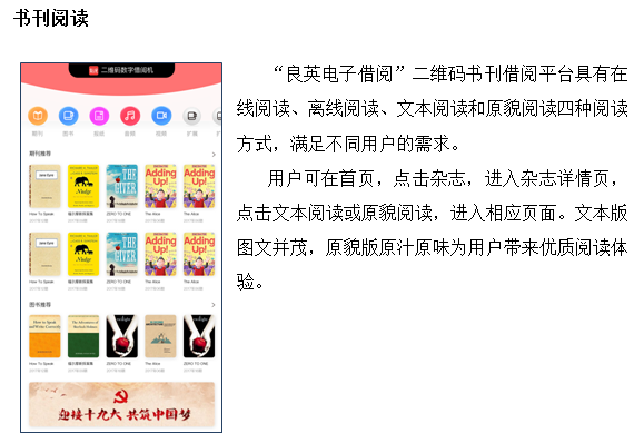 “良英電子借閱”二維碼書(shū)刊借閱平臺(tái)系統(tǒng)包含多項(xiàng)功能,如下所示: