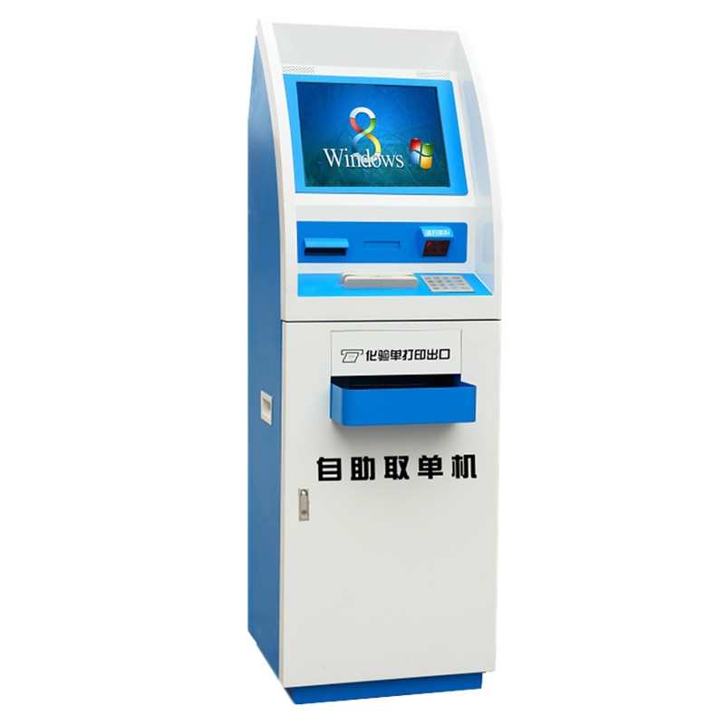 智能化綜合自助服務(wù)終端主要應(yīng)用于緩解營業(yè)廳人流大的問題,提高業(yè)務(wù)辦理的速度主要用于銀行、電信、電力、醫(yī)療、航空、零售等行業(yè),可加裝各種外圍設(shè)備,如讀卡器(IC卡、ID卡、磁條卡)、條碼掃描器(一維,二維)、金屬鍵盤(加密)、微型打印機、A4打印機、二代身份證閱讀器、發(fā)卡器、指紋儀、人臉識別等等;提供個性化多種外設(shè)功能定制、外型可由用戶指定設(shè)計、設(shè)計空間自由,配置靈活,實現(xiàn)各種多功能的用途。